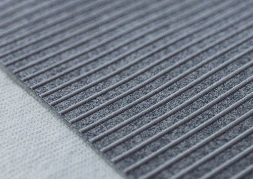 大型の加工機を使い、生地の表面に樹脂を塗布・乾燥させることで、さまざまなコーティングや特殊滑り止め加工を施しています。水まわりや玄関、ペット用マット、ラグなど、それぞれの使用シーンに応じて、片面・両面いずれにも加工が可能です。